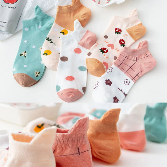 5 Pares calcetines finos estampados para mujer – estilo casual